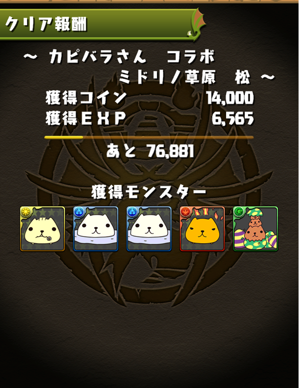 カピバラさんコラボ ミドリノ草原 松 攻略 クリアしたパーティー ・ヘライース ・カオスドラゴ